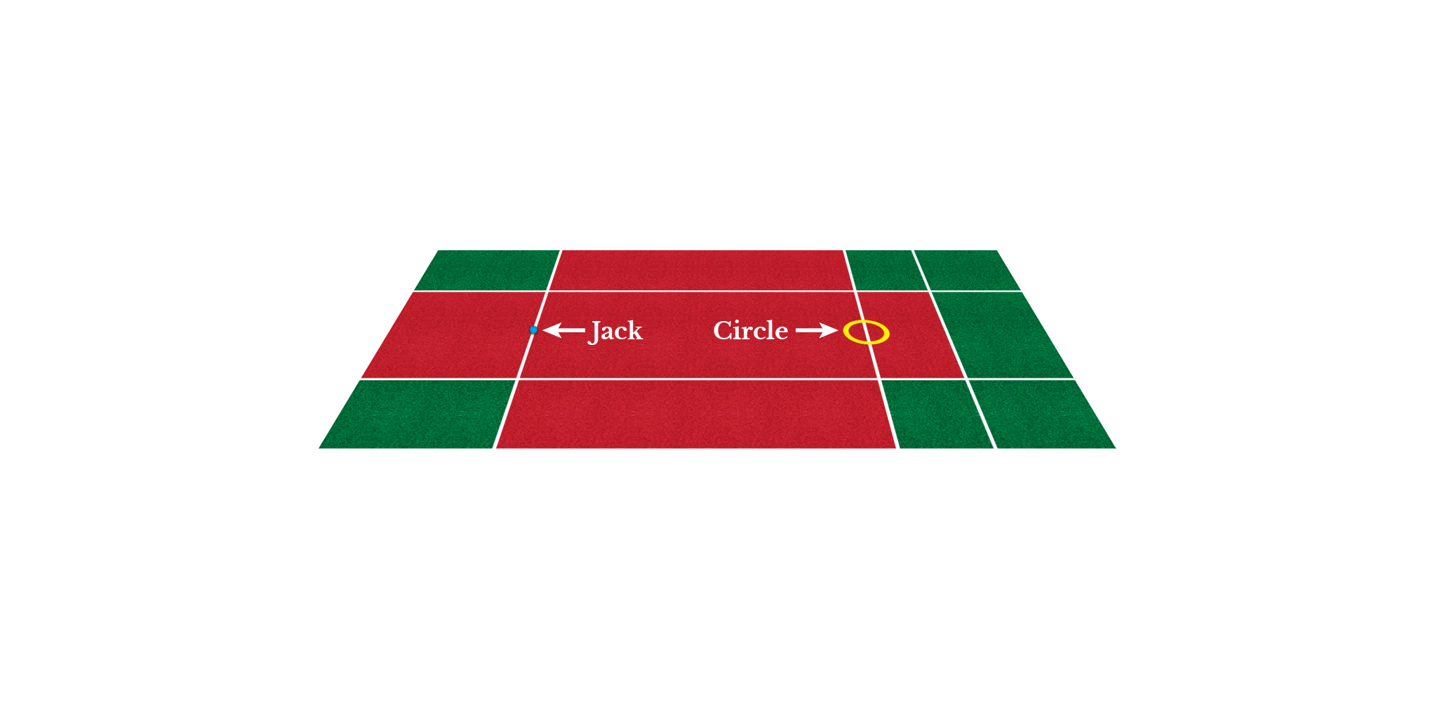 ➤ If you are playing in an environment where several courts are stuck on top of each other (ex: in a competition), the circle and the jack must be positioned at least 1.m from another circle or jack. (The circle and the jack must also be marked on the ground in the event of involuntary movement during the game phase.)