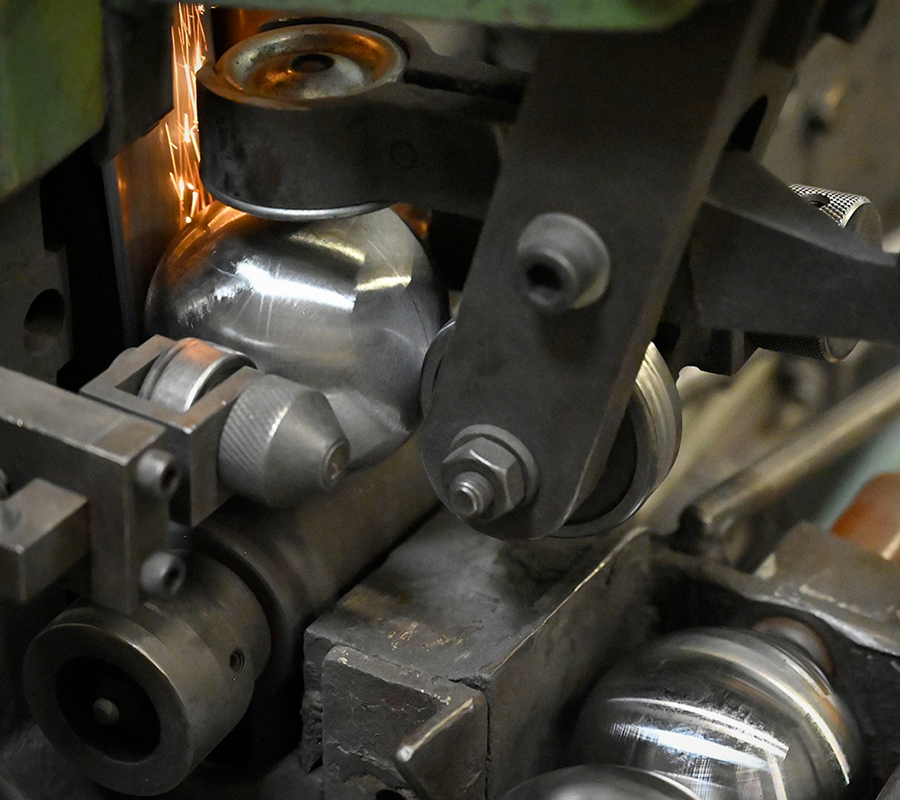 Une fois soudées et rectifiées pour assurer une sphéricité inférieure à 0,02 mm, les boules sont équilibrées avec une précision exceptionnelle, inférieure à 0,01 mm du poids total.