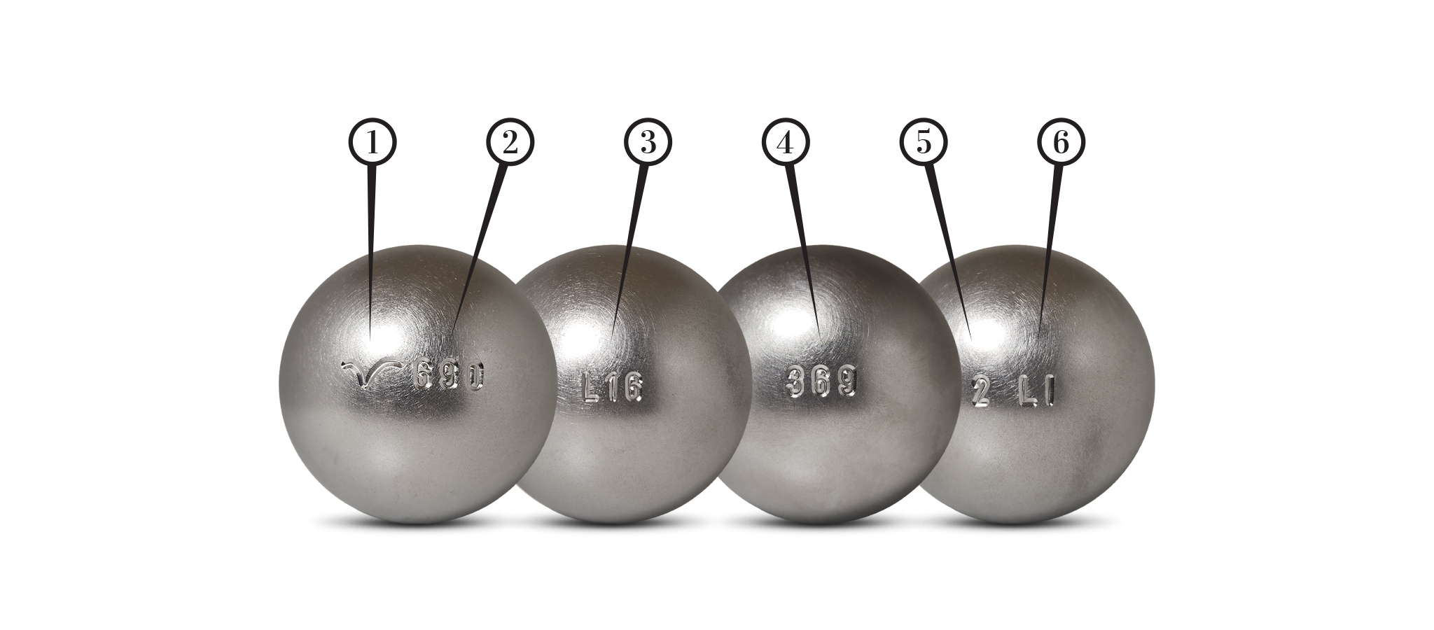 Les boules Boulenciel possèdent un marquage complet reprenant toutes les informations sur celles-ci :